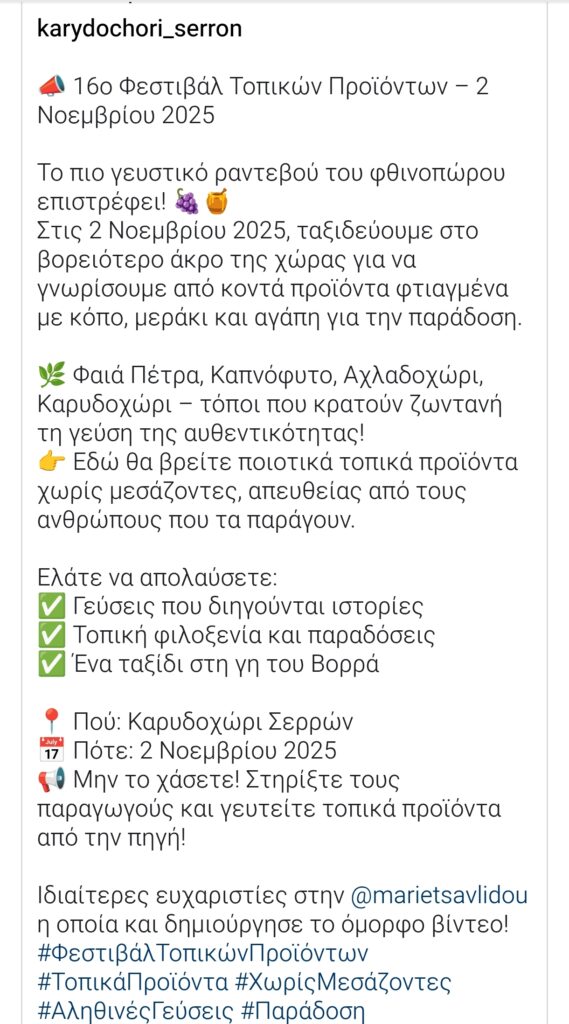16ο Φεστιβάλ Τοπικών Προϊόντων στις 2 Νοεμβρίου 2025Στις 2 Νοεμβρίου 2025,