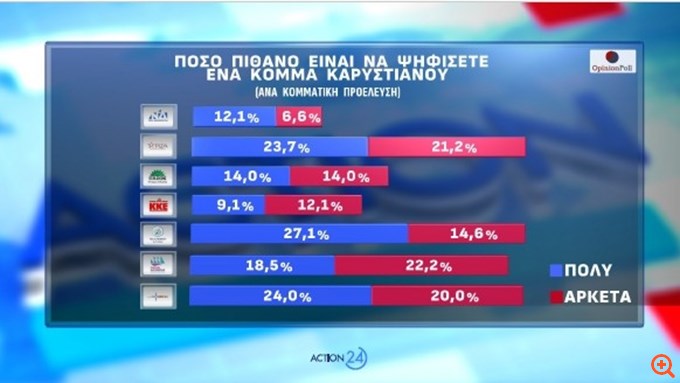 Η έρευνα παρουσιάζει και σε τι ποσοστό μπορεί να αντλήσει ψήφους το κόμμα της κ. Καρυστιανού: