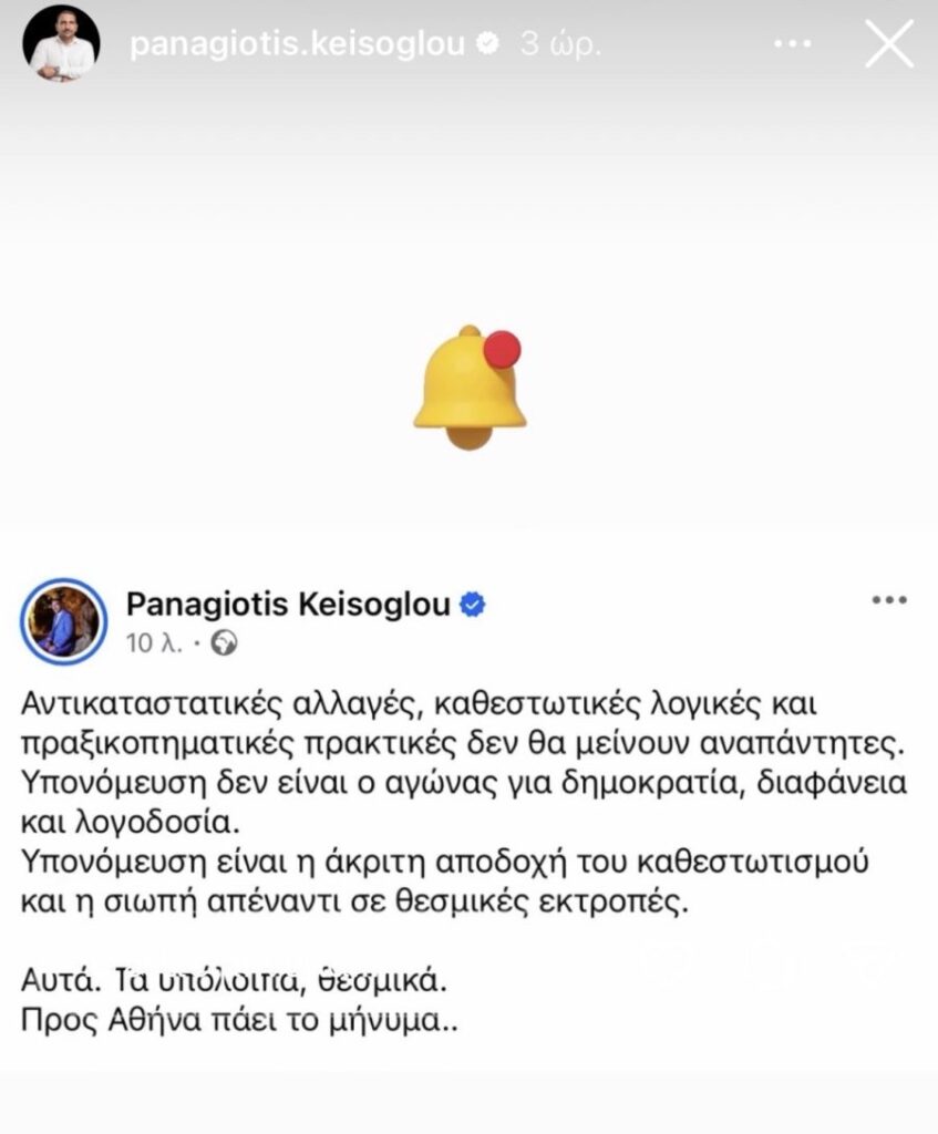 Ο εκπρόσωπος τύπου του ΠΑΣΟΚ στις Σέρρες, Παναγιώτης Κεΐσογλου, εξαπέλυσε μια σφοδρή επίθεση μέσω ανάρτησής του, φωτογραφίζοντας την ηγεσία του κόμματος στην Αθήνα και κάνοντας λόγο για αντιδημοκρατικές πρακτικές. «Αντικαταστατικές αλλαγές, καθεστωτικές λογικές και πραξικοπηματικές πρακτικές δεν θα μείνουν αναπάντητες», ανέφερε χαρακτηριστικά ο κ. Κεΐσογλου. Στην ανάρτησή του, ο εκπρόσωπος τύπου αντέστρεψε τις κατηγορίες περί «υπονόμευσης», τονίζοντας πως: Υπονόμευση δεν είναι ο αγώνας για δημοκρατία και διαφάνεια. Το μήνυμα, όπως σημείωσε ο ίδιος, έχει σαφή αποδέκτη την Αθήνα, προειδοποιώντας πως οι επόμενες κινήσεις θα γίνουν με θεσμικό τρόπο, αφήνοντας ανοιχτά όλα τα ενδεχόμενα για τη συνέχεια.