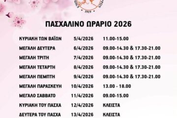 Ο Εμπορικός Σύλλογος Ν. Σερρών ανακοίνωσε το προτεινόμενο εορταστικό ωράριο λειτουργίας των εμπορικών καταστημάτων για την περίοδο του Πάσχα, το οποίο τίθεται σε[…]